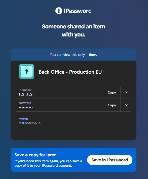 share.1password.com, so you can verify its authenticity. - The information can be viewed only 1 time per person.